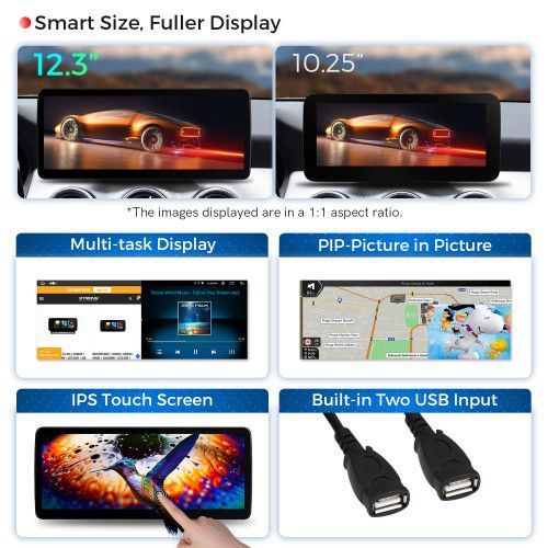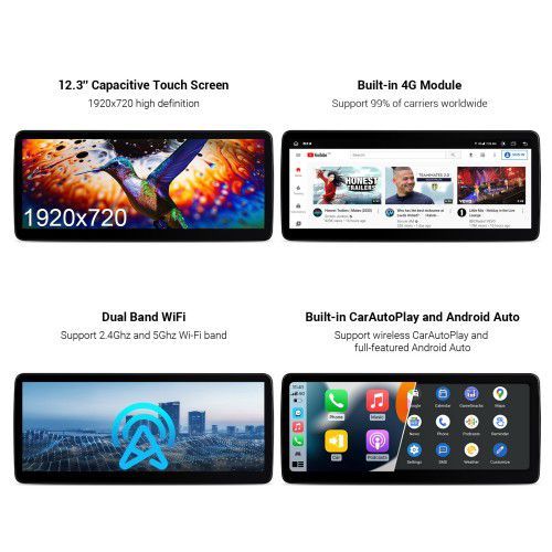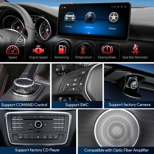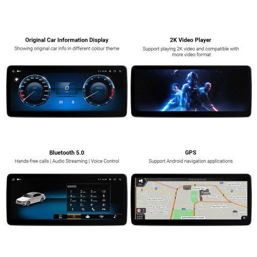 A 12.3-inch 2400×900 fully-laminated anti-glare canvas that floats like original glass above turbine vents. Sculpted private molds—luxury arc, turbine-edge or AMG-line—carry authentic MBUX chrome accents and star-starup logo; pick Qualcomm or MediaTek heart (4+64 GB to 8+256 GB) for global 4G, wireless CarPlay/Android Auto, AHD camera—turn every C/E/S/GLE into a S-Class digital lounge.