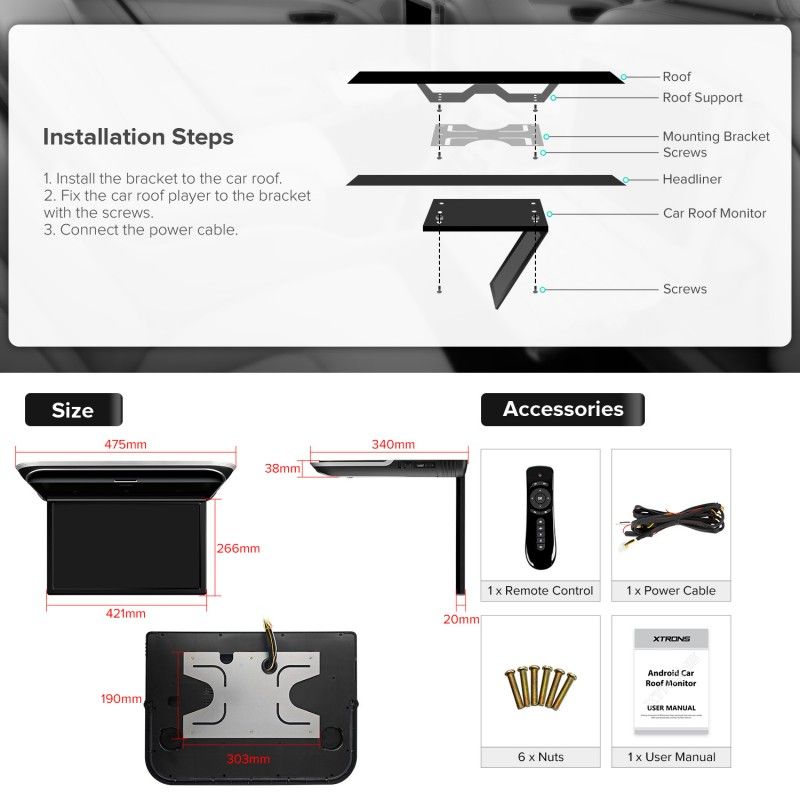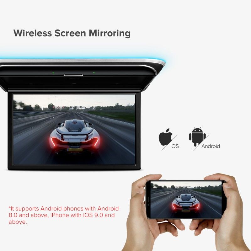 Easy ceiling installation with adjustable viewing angles and options for built in mic or camera or GPS, Ideal for family road trips, shuttle services, and commercial fleets seeking overhead car video systems that deliver entertainment without sacrificing cabin space.